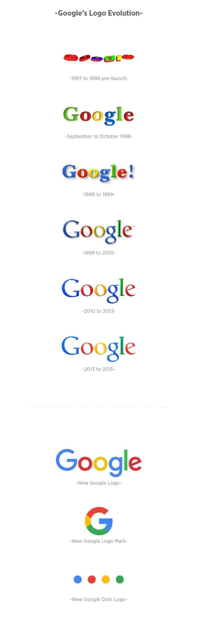 The previous ideration of the Google logo was specifically designed for desktop, whereas the new logo along with the G logo mark and four coloured dots can be represented across all platforms in a more versatile manner. As technology evolves these new updates will allow the Google brand to be represented across all platforms.
